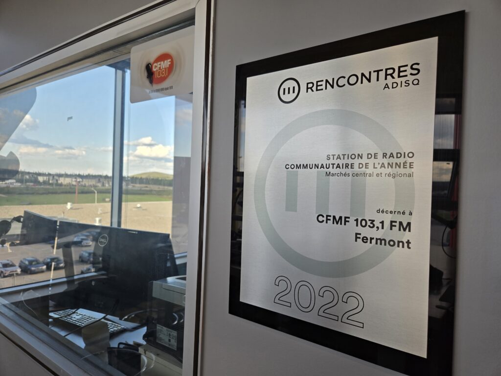 Par Élizabeth Séguin La radio de Fermont La radio CFMF 103,1 est en nomination dans deux catégories aux prix Rencontres de l’ADISQ 2025. Le média de Fermont est en lice pour le prix de Station de radio communautaire de l’année – Marchés central et régional, avec les radios CFIM 92,7 FM – Îles-de-la-Madeleine; CIBL 101.5 […]