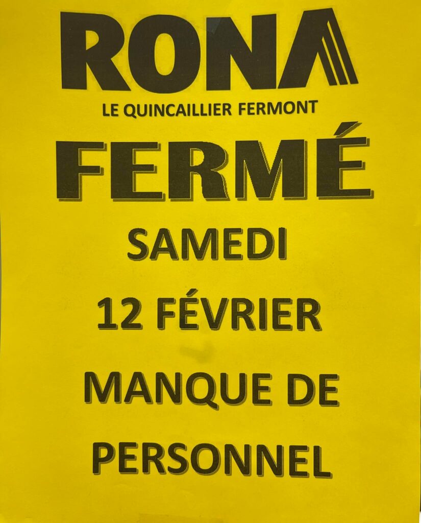 Par Élizabeth Séguin La radio de Fermont La pénurie de main d’œuvre continue d’affecter l’offre de services dans les commerces de Fermont. Ce samedi 12 février, le RONA de Fermont a annoncé qu’il sera fermé, en raison d’un manque de personnel. C’est la première fois que la succursale doit réduire ses heures d’ouverture de la […]