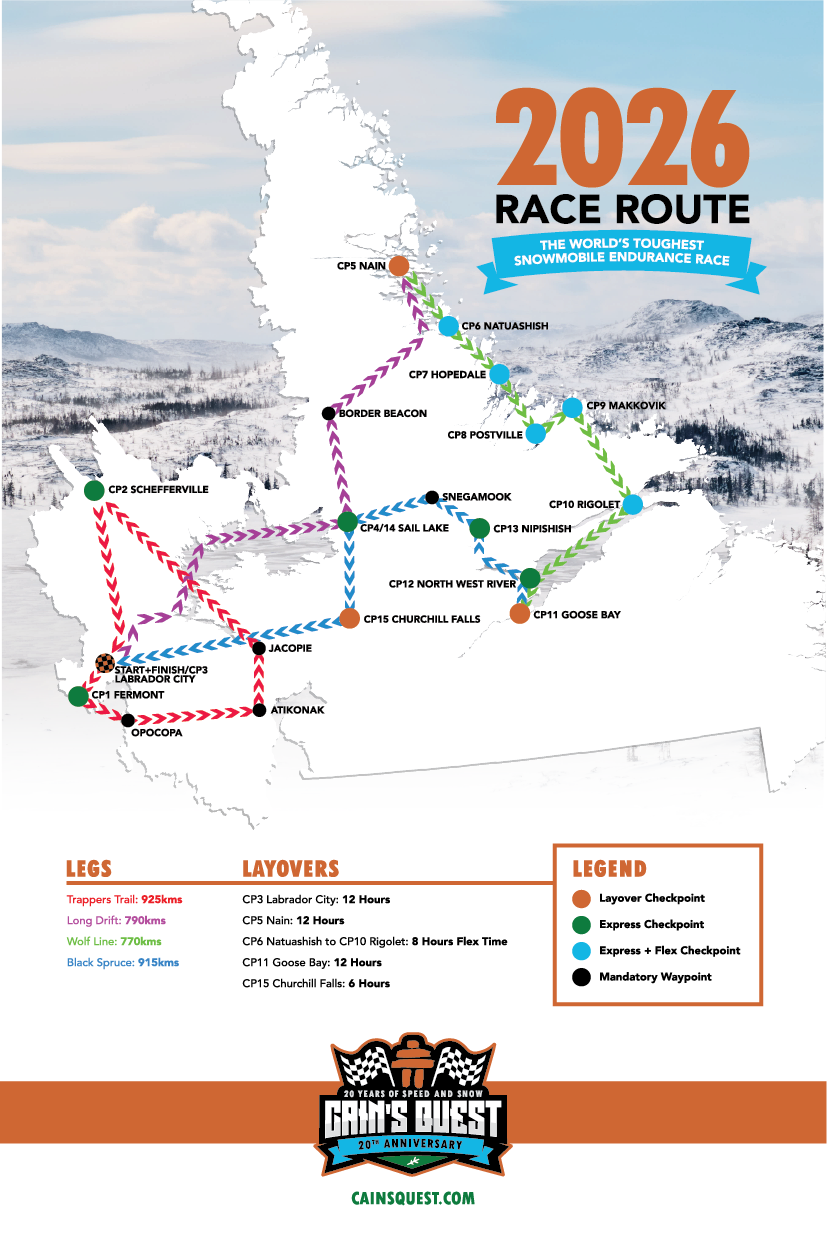 Dix-huit équipes ont pris place sur la ligne de départ, le 22 février. Les motoneigistes devaient terminer une première boucle de 925 km, soit un aller-retour à Schefferville.