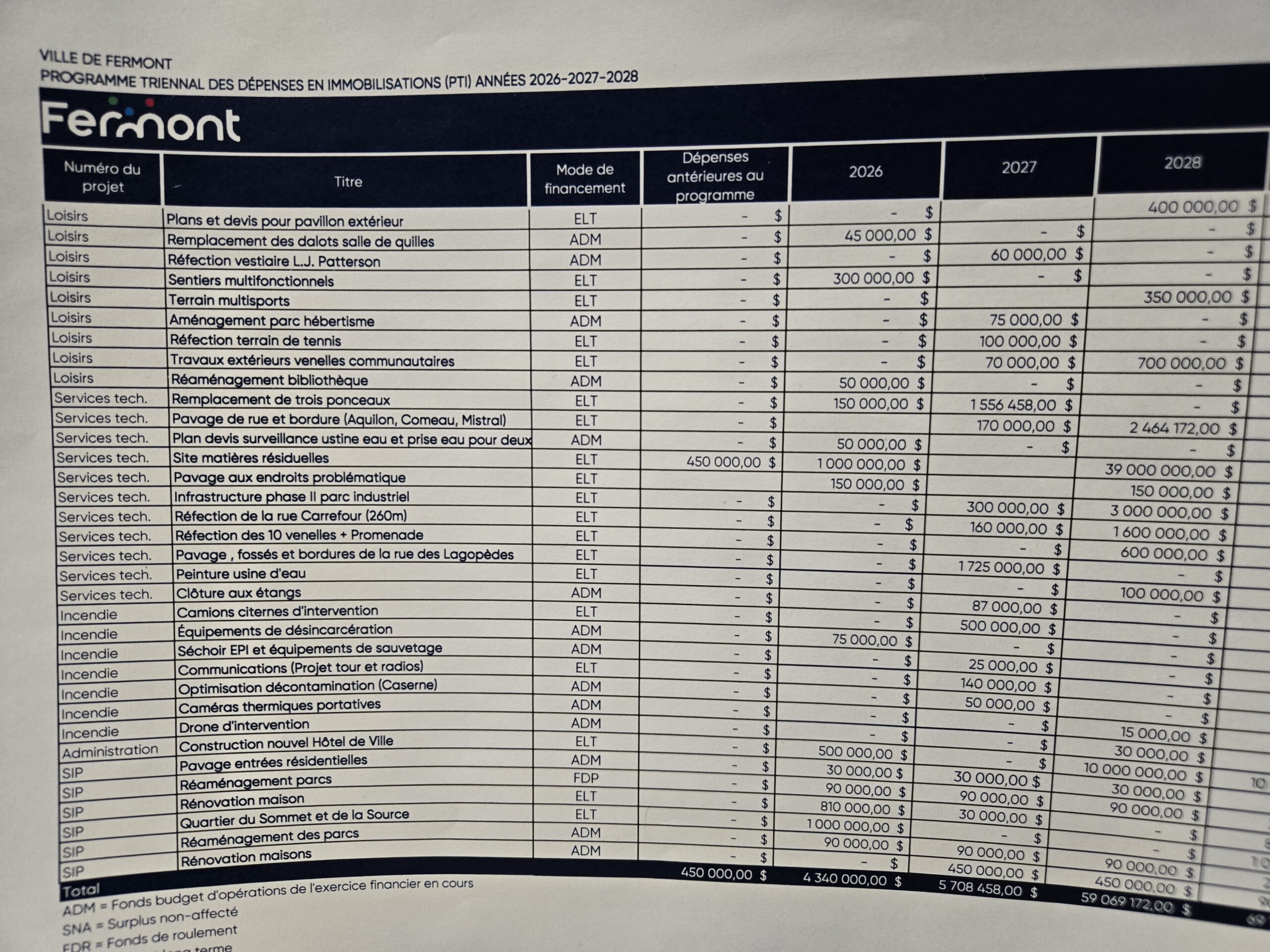 Les prévisions budgétaires 2026 ainsi que le plan triennal d’immobilisations peuvent être consultés au bureau de la mairie de Fermont.
